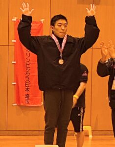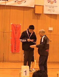初めて競技会に参加したSくん。メダルをもらって誇らしげな表情😁
