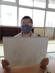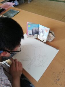 今日は象の絵を描いたA君🐘