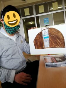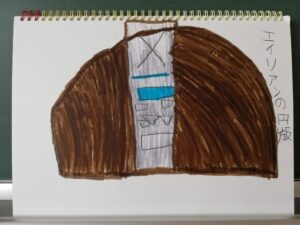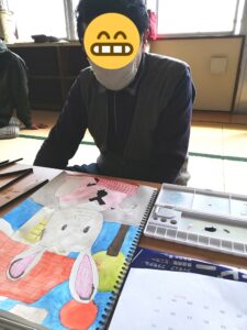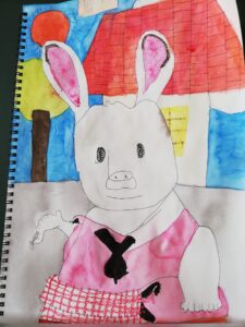 今日は、シルバニアファミリーのウサギの絵を描いたEさん。