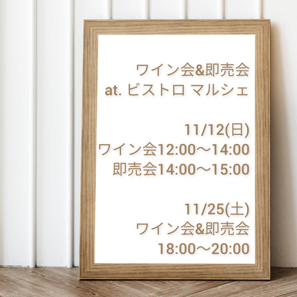 ビストロ マルシェ ランチワイン会・ディナーワイン会&ワイン即売会 のご案内🍷