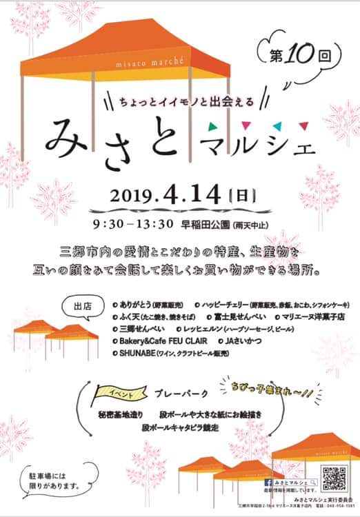 4/14(日) 第10回 みさとマルシェ 出店しま~す