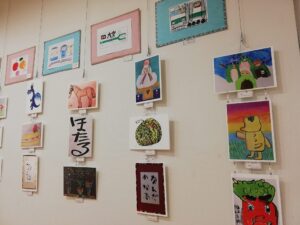 女将が活動しているスペシャルオリンピックス文化部 絵画 楽がきクラブのアーティストの作品も展示されるので、今日は会場の展示作業に行ってきました。