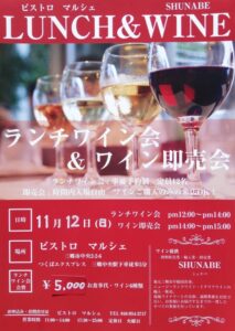 11/12(日) 12:00~14:00 ランチワイン会 残り2席
