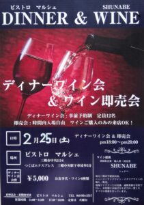 2/25(土) 18:00〜20:00 ワイン即売会 同時刻内開催