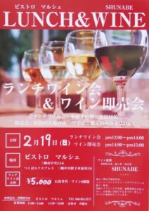 2/19(日) 12:00〜14:00 ワイン即売会 14:00〜15:00